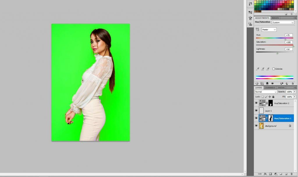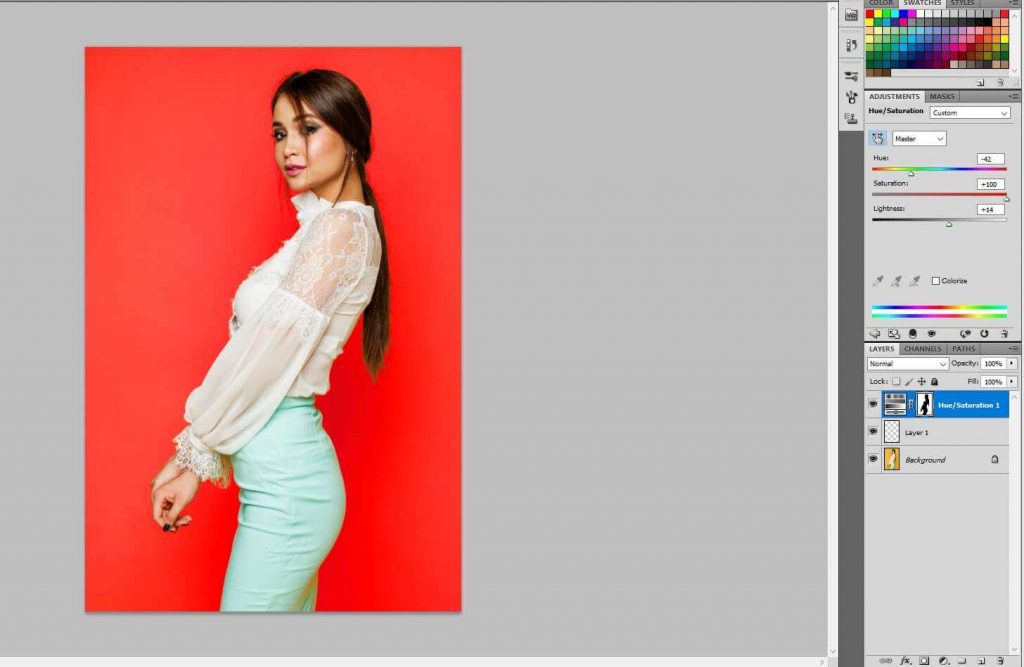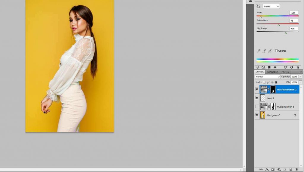 1. While working with hue and saturation don’t forget to take adjustment layer.