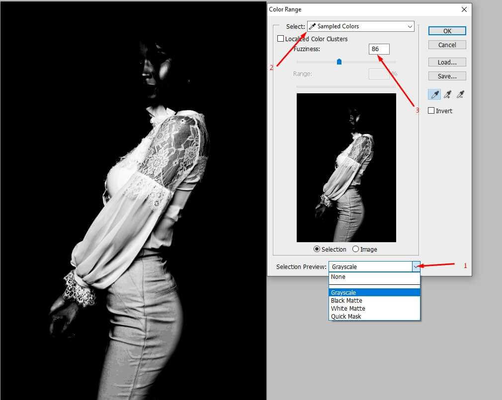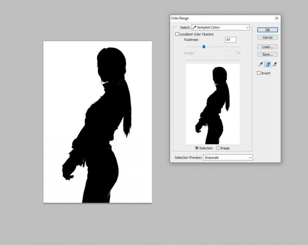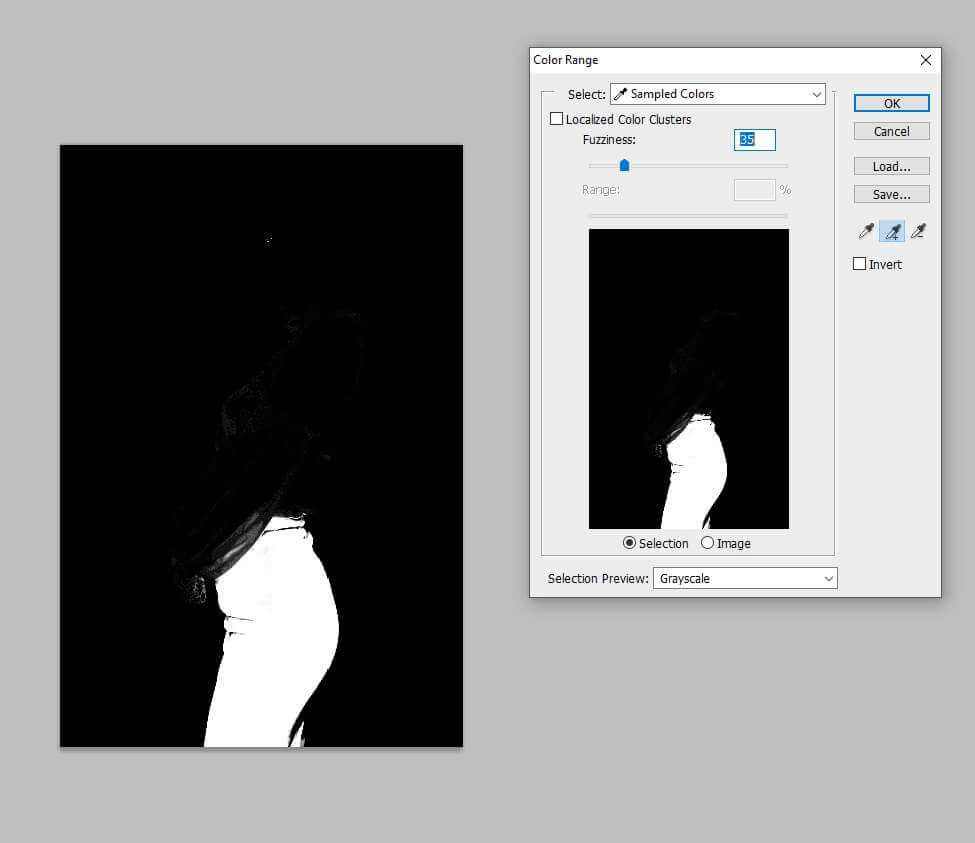 3. In color range mode, preview the object in Grayscale mode. It will give you a better experience.