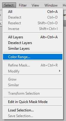 After creating the layer go to the color range option from the select at the top.