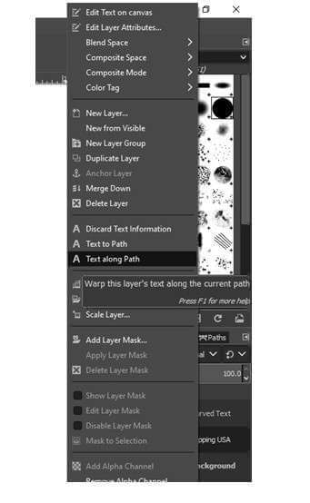 In this newly created layer, we are going to place the curve text in gimp. After picking the layer click right mouse on the layer and hit on this option.
